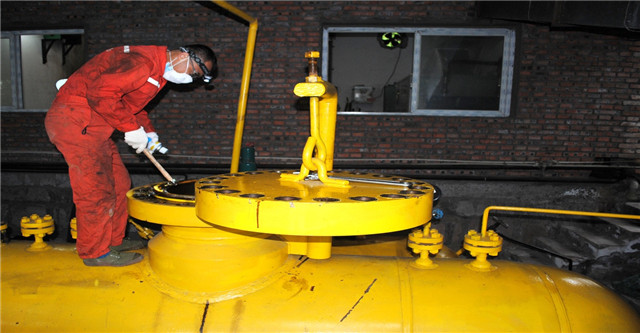 为了配合特检员的工作,在公司安全技术环境保护处廖君处长的指挥和动力车间主任廖明志的安排下,机修组钳工师傅提前到空压机房,把储气罐上的检测口盖取下,并配合市特检员开展检测工作。