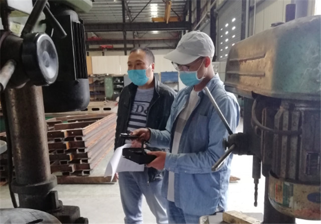 在成保公司安全管理员杨小港的陪同下,检测老师分别对车间各个工作岗位进行了测试。本次检测范围包括噪声、照度、一氧化碳、二氧化碳、二氧化氮、电焊烟尘、电焊弧光、粉尘、木粉尘、苯、甲苯、二甲苯等。按照检测程序,检测老师对生产现场进行了系统的危害因素采样检测。同时,检测老师根据车间现场实际情况对个别职业危害重点部位进行了评价。