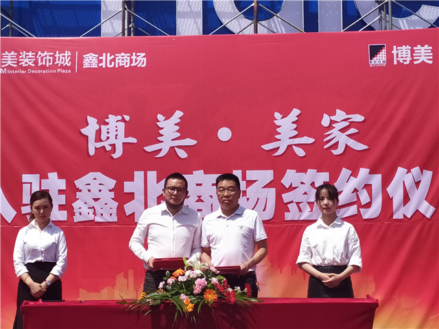 本网讯(谢碧静报道)2020年5月18日,博美旗下又一新零售项目——博美﹒美家,正式入驻位于新都的博美装饰城鑫北商场。入驻签约仪式在鑫北商场外广场举行,成都博美亿达企业管理有限责任公司(以下简称“博美公司”)总经理吴建麟、副总经理席海峰、申蓉公司董事长吴明成、执行董事兼总经理吴艳明、总经理钟兵以及博美﹒美家负责人吴邦双等共同出席了当天的签约仪式。