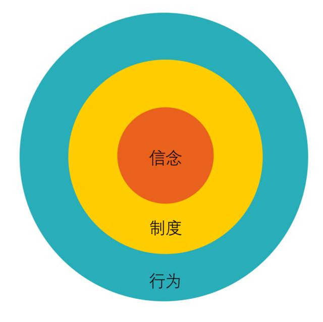这就是企业文化的三个圈圈,信念,制度和行为,企业文化不该是奴役员工自由思想的工具,也不是强迫他人无条件服从的巧妙说辞,更不是党同伐异的核武器。