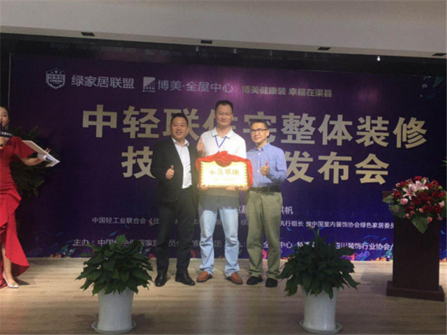 本网讯(谢碧静报道)5月31日,主题为“博美健康装、幸福在渠县”——中轻联《住宅整体装修技术规范》发布会在渠县博美•全屋中心隆重召开。出席本次发布会现场的嘉宾包括国家中轻联《住宅整体装修技术规范》标准领导组执行组长、中国绿色家居联盟、成都市绿色家居产业协会会长李洪帆,四川省装饰行业协会常务副会长江光明,博美全屋中心总经理向德坤,博美全屋中心运营总监余峻峰,渠县部分业主以及长期以来支持和帮助博美全屋中心的朋友们。本次发布会的目标是“共商行业新规范,打造行业新标准”。