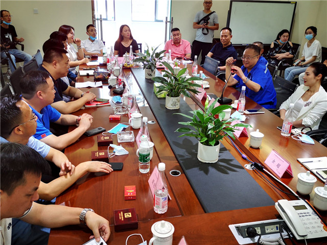 参观结束后,考察团来到公司会议室,双方围绕“六大产业”发展展开交流。