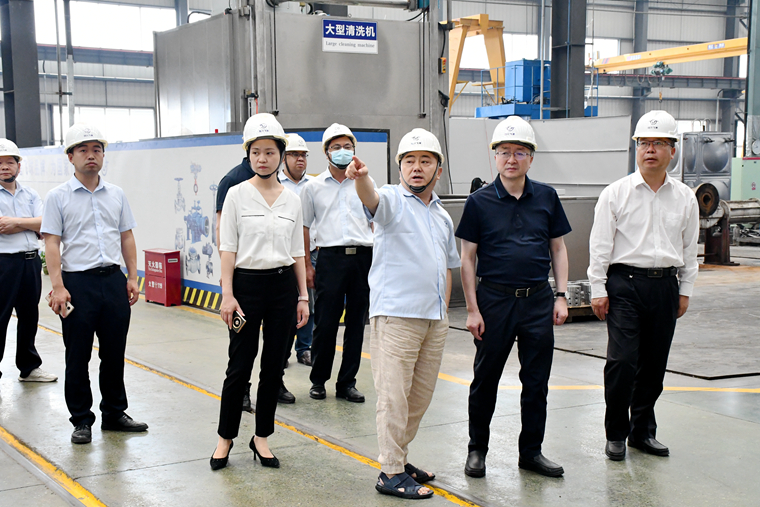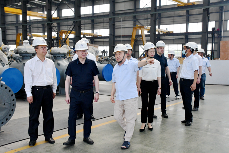 在樊总引领下,陈华斌副市长一行前往生产车间,参观了飞球阀门的加工、制造、安装的整个生产流程,并在调研过程中樊总介绍了四川飞球目前的生产经营情况。他介绍道:今年是疫情放开后的第一年,也是百废待兴、充满契机的一年,国家推动成渝双城经济圈建设战略全面加速,四川飞球也将紧跟其后推动阀门制造的创新发展。四川飞球在保持大型长输管线球阀生产优势的同时,将打破产品单一的束缚,加大对新产品研发投入,尤其是化工领域小口径球阀的研发。近期,公司接连引进了高低温检测和大型清洗机等设备,均为同行业内少有的先进设备,为新产品的投产和产品质量的保证打下了坚实基础。介绍中樊总进一步强调:随着军工、水电、新能源、城市管网等产业加速发展,对阀门的制造技术提出了更高要求,目前四川飞球正处于粗放式发展方向往专精特新企业转型升级阶段,推动企业往信息化、数字化、智能化方向发展。