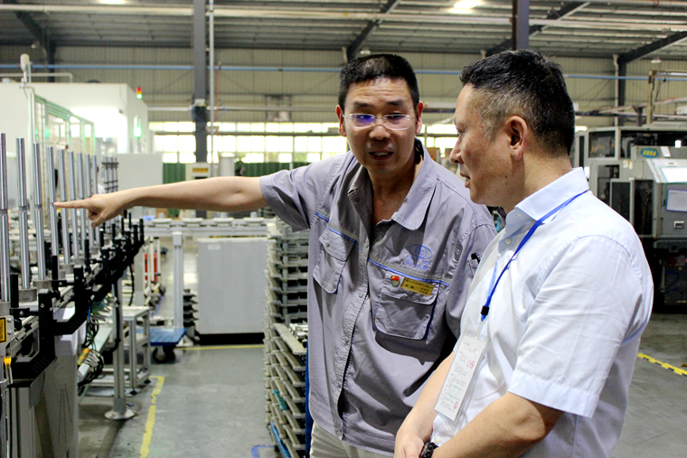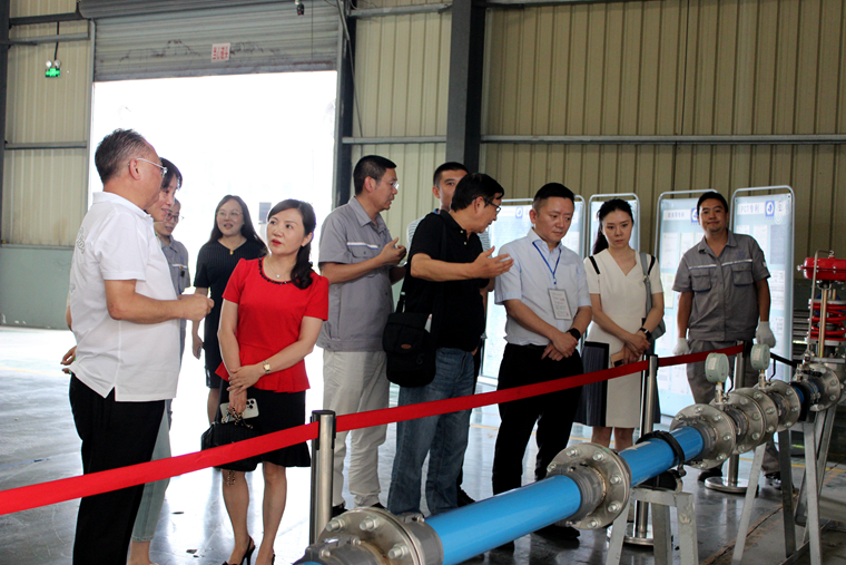接着,在中汽成配公司总经理余超的引领下,俞主席一行进入中汽成配参观考察,特别饶有兴趣地参观了中汽成配转型升级的两个新项目——真空泵转子轴及非能动防爆阀项目,俞主席一行对中汽成配的转型项目给与高度评价。