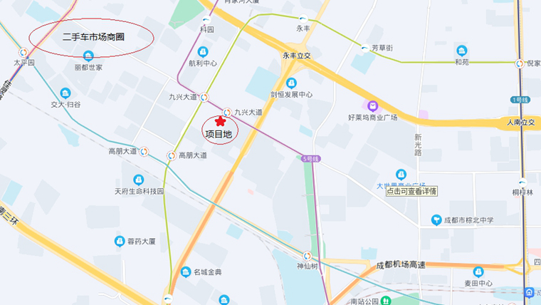 已正式开工的汽车充电站项目,位于成都市高新区九兴大道地铁站B出口旁步行210米,项目紧邻高朋大道、永丰立交、地奥药业、诺亚8号温泉酒店、神仙树大院等,周边拥有办公园区、二手车商圈和住宅小区,距G5京昆高速入口(成雅高速方向)3分钟,地理位置较为优越。