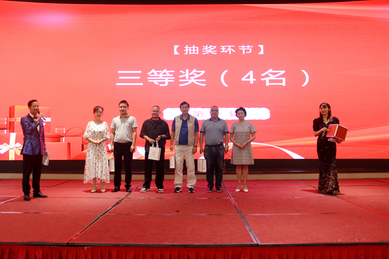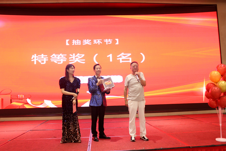 晚会现场,在同仁们表演的过程中,最令人期待的环节便是抽奖环节,不仅是自己的一份幸运,也能够沾沾夏主席生日的喜气。本次抽奖环节共设置了23个名额,三等奖16名,二等奖4名,一等奖1名及特等奖1名。抽奖现场欢呼声连连,热闹非凡。
