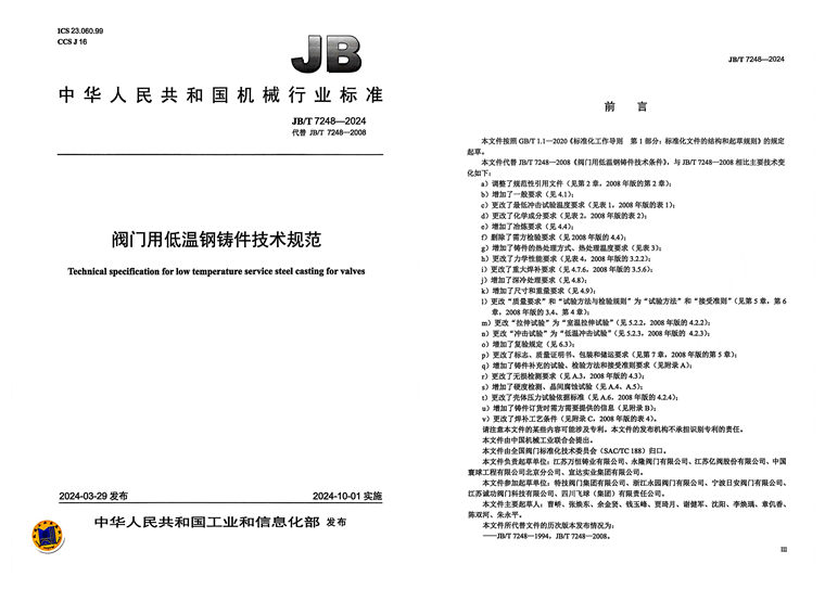 该标准的发布实施,为阀门用低温钢铸件生产制造提供了科学统一的技术依据,有效解决了传统标准在超低温工况适应性、质量稳定性等方面的不足,推动行业从“合格制造”向“优质制造”转型,为石油、化工、电力等关键领域的低温阀门安全运行提供可靠保障,技术水平达到国内领先水平。