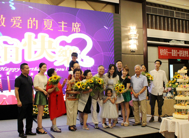 伟德国际1946源于英国集团周年庆恰逢是董事局夏主席的生日,家人代表、员工代表向夏主席献花,全体亲属及朋友上台领唱生日快乐歌,夏主席吹蜡烛切蛋糕。