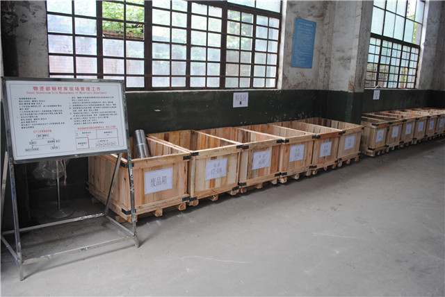 长期以来他们按公司总经理樊平提出的“两整一规”的要求,即:整理、整顿、规范的工作要求,在平凡的工作岗位上默默无闻工作。钢材库的员工结合公司开展的6S管理活动,即:整理、整顿、清扫、清洁、素养、安全六个要素,从小事做起,克服了人手少事情多、工作繁琐等困难,采取边工作,边整改的“蚂蚁啃骨头”办法,对钢材库进行规范管理。在日常的工作中,他们对钢材验收入库后,把不锈钢和碳素钢分别分区位,整齐定点摆放。为了美观,特制了专用的木架,垫放长短不一的同类圆钢条。库管员负责把圆钢条头摆放整齐,涂上了醒目的色标;并对挂上了物料标识卡,卡片内容包括:物料代码、物料名称、规格型号、材质、供应单位、入库时间等。他们利用有效库区,做到上放轻,下放重,常用放外,贵重放里。大件摆放地上,小件摆放到铁货架上。为了更好的分类锯下来的物料,他们制作了各类钢材料头大木箱14个,贴上不同材质名称,摆放在进库房大门旁边。锯床工人根据锯下来不同规格型号的料,进行分类装放。