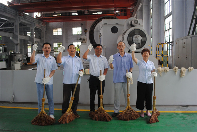 8月8日,是飞球公司的6S管理工作活动日,公司领导带头参加6S活动。下午15:00领导们全部集中在金加工车间大门处,由6S办公室主任万德权谈参加活动的领导分工情况。6S领导小组执行组长曹总作了动员讲话。6S咨询公司专家彭振华作了讲话。第一小组由曹总带队,在大口径工段擦大型球磨机上的灰尘。第二小组由江总带队,到金加工车间小口径工段擦立式车床上的灰尘。