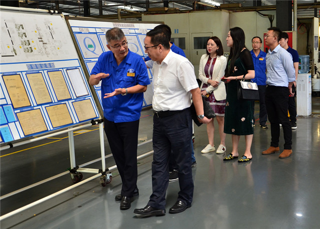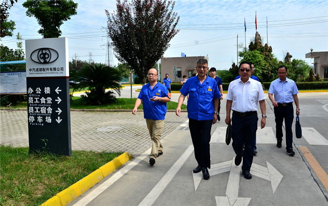在中汽成配陈荣贵总经理的陪同下,杨平领导一行饶有兴致的参观了公司各个车间,对装配式凸轮轴车间、乘用车凸轮轴车间、热处理车间、商用车凸轮轴车间进行了实地考察。