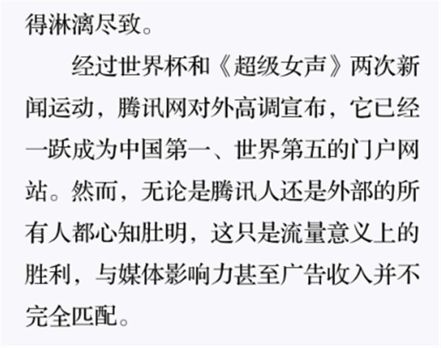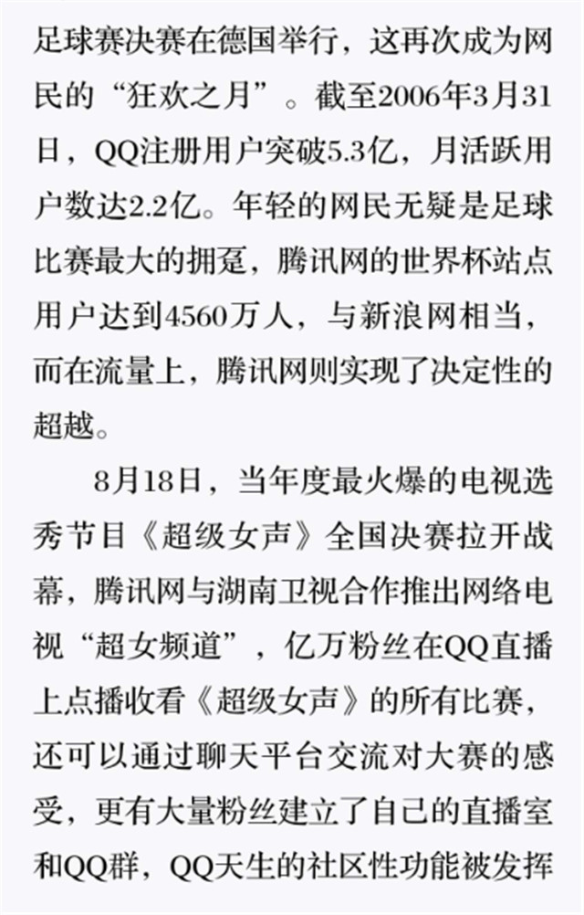 深读之后发现,其实全书真正的核心在于透过腾讯可以观察到的中国企业逻辑,其中很多基于国情而诞生的特殊能力,过去或受诟病或被追捧,而本书作者可以以更加客观的姿态对其进行分析,这无疑是一种当代创业者和企业家应当学习的姿态和能力。