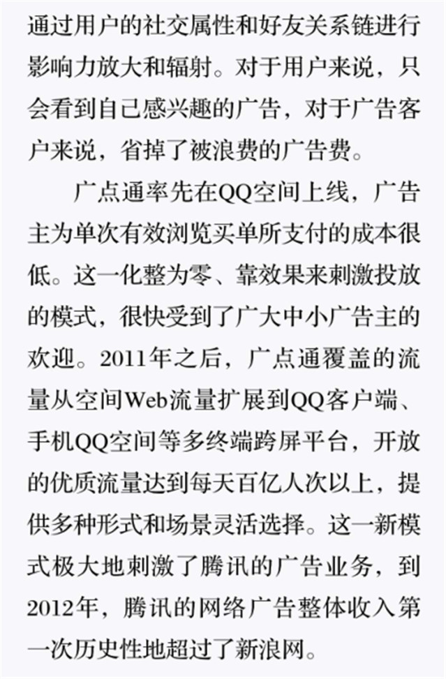 深读之后发现,其实全书真正的核心在于透过腾讯可以观察到的中国企业逻辑,其中很多基于国情而诞生的特殊能力,过去或受诟病或被追捧,而本书作者可以以更加客观的姿态对其进行分析,这无疑是一种当代创业者和企业家应当学习的姿态和能力。