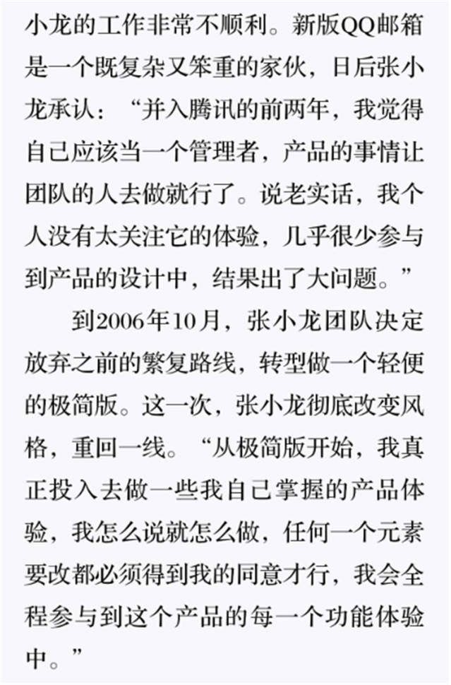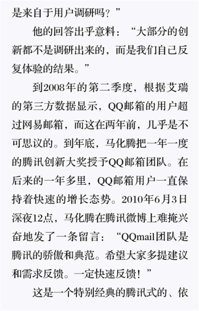 深读之后发现,其实全书真正的核心在于透过腾讯可以观察到的中国企业逻辑,其中很多基于国情而诞生的特殊能力,过去或受诟病或被追捧,而本书作者可以以更加客观的姿态对其进行分析,这无疑是一种当代创业者和企业家应当学习的姿态和能力。