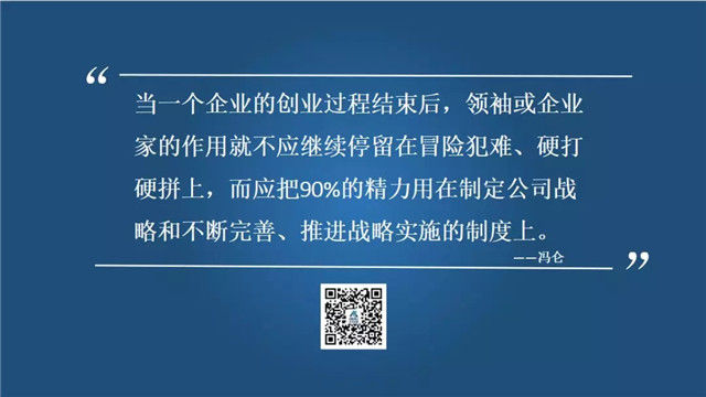 当一个企业的创业过程结束后,领袖或企业家的作用就不应继续停留在冒险犯难、硬打硬拼上,而应把90%的精力用在制定公司战略和不断完善、推进战略实施的制度上。
