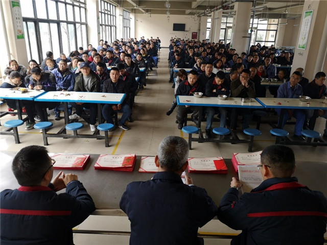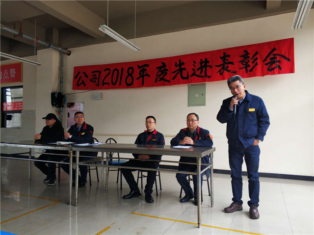 本次表彰会由公司副总经理、工会主席邹祖力主持。公司副总经理余超宣布了表彰决议。他发言道:2018年是我国改革开放40周年,也是公司发展史上不平凡的一年,全体员工以党的19大精神为动力,团结拼搏,埋头实干,保持了公司稳定发展的良好态势,取得了来之不易的发展成绩,车间、部门涌现出了一批先进生产工作者、质量标兵、精益之星、年度最 佳新人和先进集体。为进一步肯定成绩、褒扬先进、振奋精神,公司决定予以表彰。对获奖人员进行颁奖表彰鼓励。