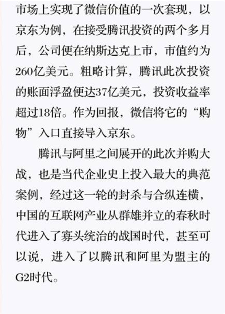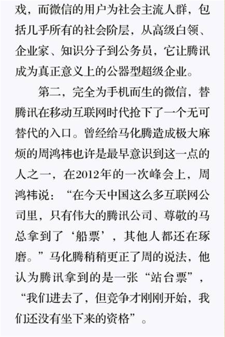深读之后发现,其实全书真正的核心在于透过腾讯可以观察到的中国企业逻辑,其中很多基于国情而诞生的特殊能力,过去或受诟病或被追捧,而本书作者可以以更加客观的姿态对其进行分析,这无疑是一种当代创业者和企业家应当学习的姿态和能力。
