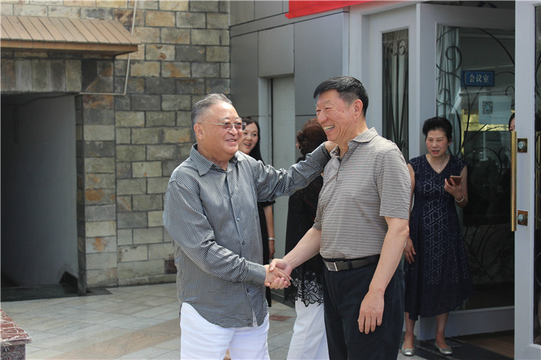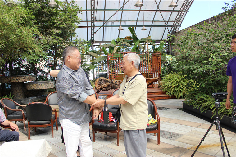 伟德国际1946源于英国集团董事局主席夏朝嘉与老朋友老员工亲切握手