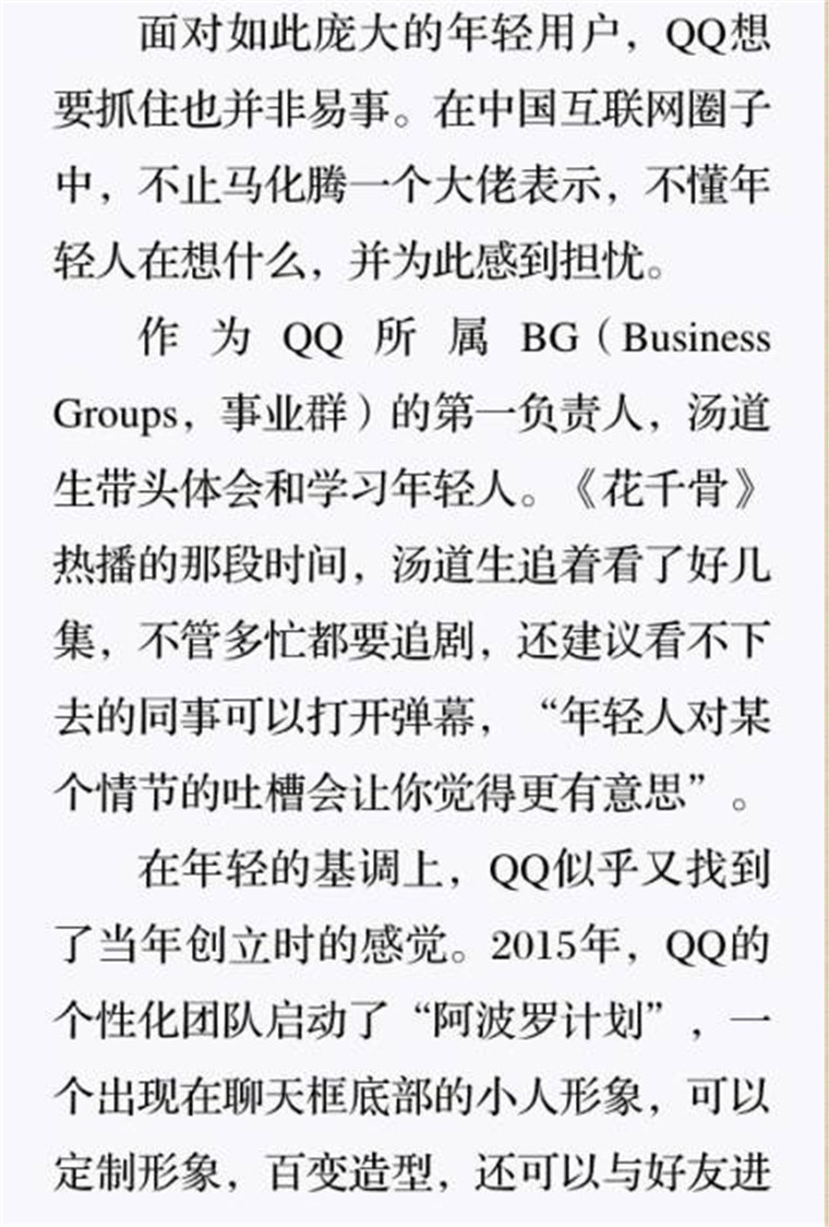 深读之后发现,其实全书真正的核心在于透过腾讯可以观察到的中国企业逻辑,其中很多基于国情而诞生的特殊能力,过去或受诟病或被追捧,而本书作者可以以更加客观的姿态对其进行分析,这无疑是一种当代创业者和企业家应当学习的姿态和能力。