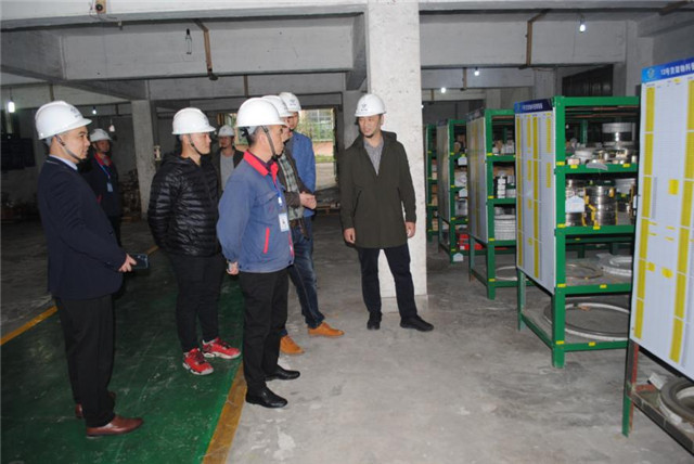 在公司6S推进办公室主任万德权的陪同下,客人深入各车间和检测中心、物资部、库房进行了参观。